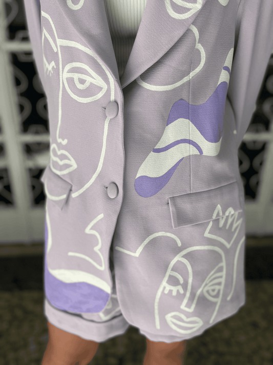 Blazer oversized lilás pintado a mão