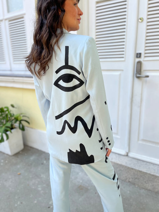 Blazer oversized azul pintado a mão