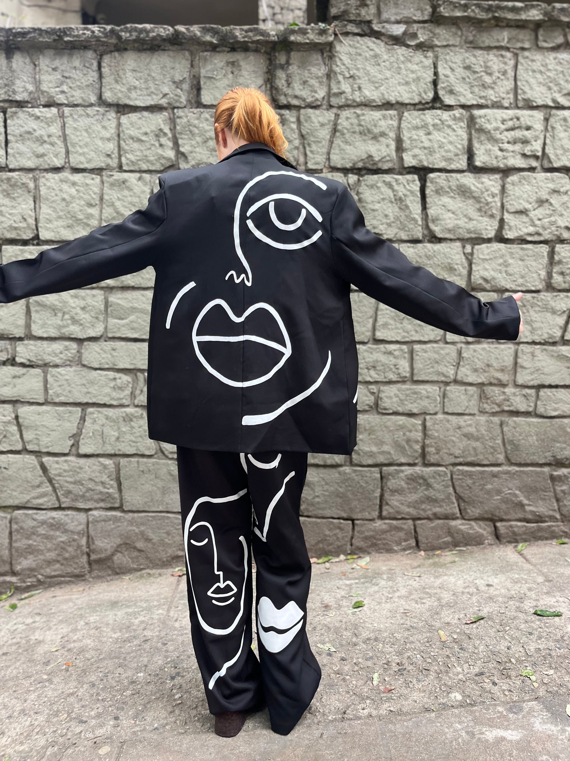 Feito em edição única, o blazer traduz o olhar autoral da Terezas: o vestir como forma de arte, o contraste como linguagem e a exclusividade como assinatura.