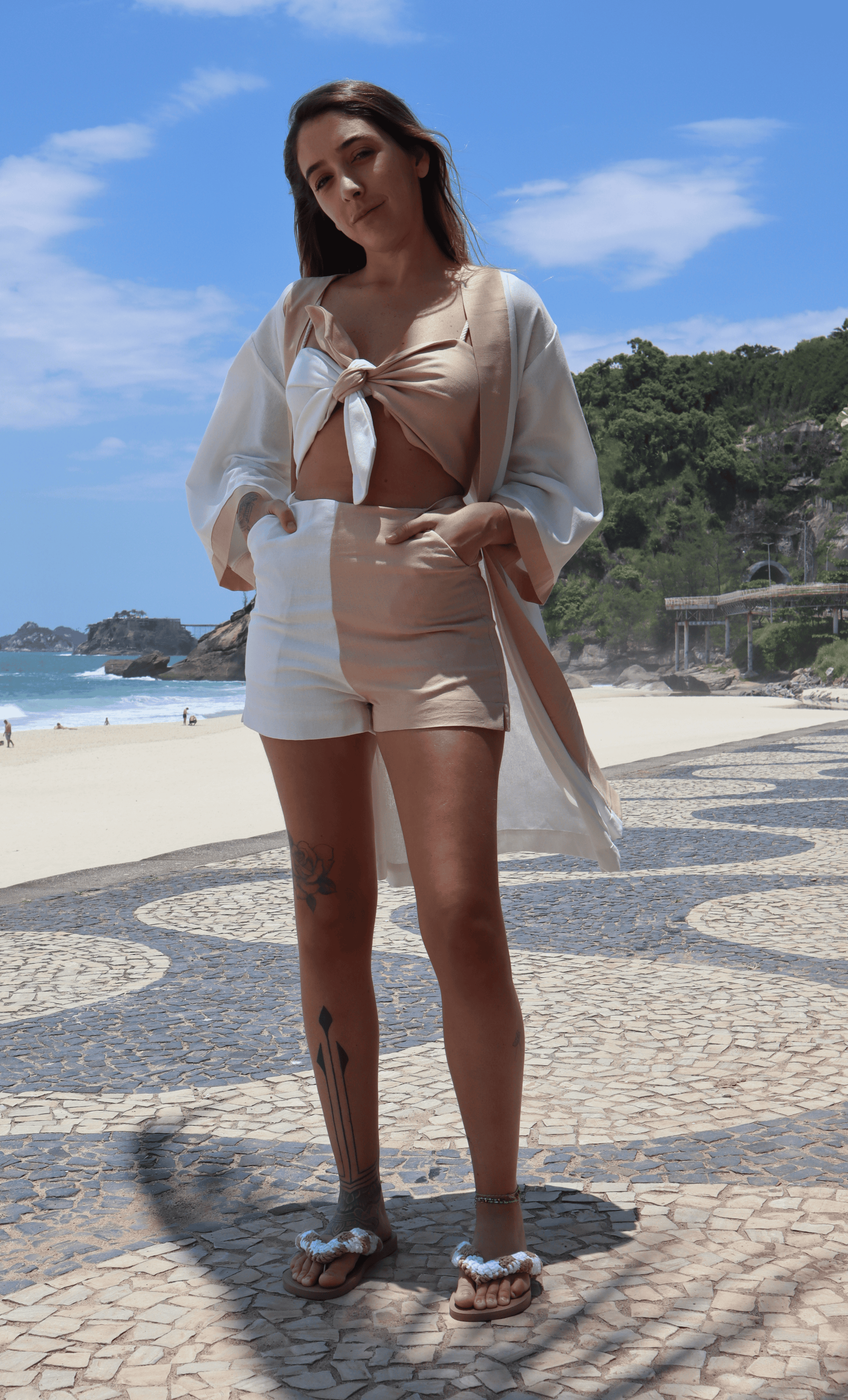 Feito em linho nas cores off white e nude, é aquela peça curinga que transforma qualquer look.